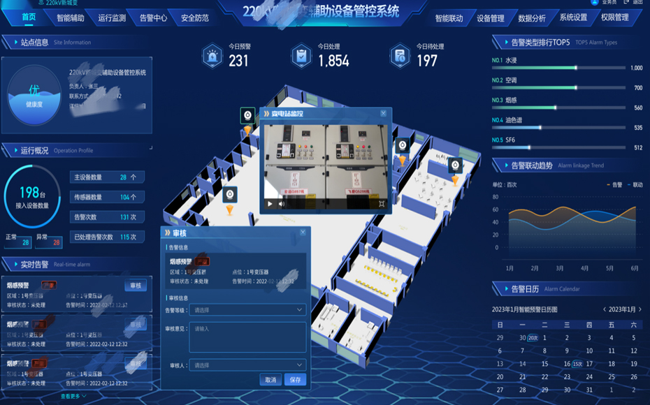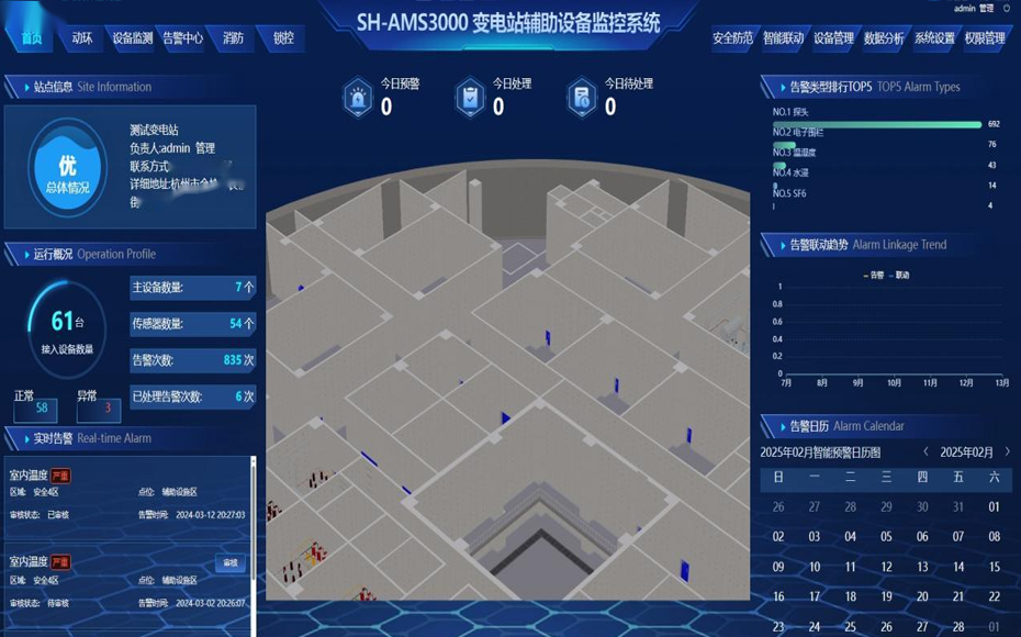 變電站輔助設(shè)備監(jiān)控系統(tǒng)提供全面的站點管理和監(jiān)控工具,幫助操作人員及時發(fā)現(xiàn)問題、做出決策、規(guī)劃維護(hù)活動,并提高變電站的運營效率、設(shè)備可靠性和電網(wǎng)穩(wěn)定性。通過實時數(shù)據(jù)和歷史分析,幫助管理人員提供輔助決策。